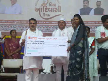 ડોલવણ ખાતે ગૃહમંત્રી હર્ષ સંઘવીની ઉપસ્થિતિમાં વિશ્વ આદિવાસી દિવસની ઉજવણી