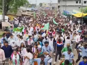 જોહાર રેલી: કાર્યક્રમના અંતે આદિવાસી એકતા અને ગૌરવનું પ્રતીક બનીને “જય જોહાર” ના ગજવાતા નારા સાથે એક વિશાળ અને જોશીલી રેલી ઉમરપાડાની શેરીઓમાંથી પસાર થઈ.