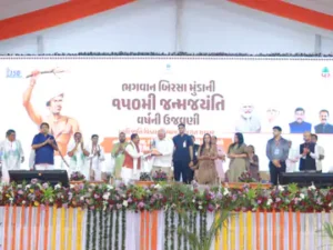 સુરત જિલ્લાના માંડવી ખાતે મુખ્યમંત્રી ભૂપેન્દ્ર પટેલની અધ્યક્ષતામાં ભગવાન બિરસા મુંડાની 150મી જન્મજયંતિનો ઐતિહાસિક કાર્યક્રમ ભવ્યતાપૂર્વક ઉજવવામાં આવ્યો. આ પ્રસંગે મુખ્યમંત્રીએ રૂ. 479 કરોડના આદિજાતિ કલ્યાણકારી પ્રકલ્પોની જાહેરાત કરી, જે ગુજરાત સરકારની આદિજાતિ સમુદાયના સર્વાંગી વિકાસ માટેની પ્રતિબદ્ધતા દર્શાવે છે.