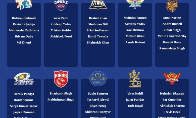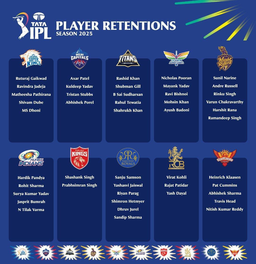 IPL 2025 / 2025ની આઈપીએલ માટે 10 ટીમોએ ખેલાડીઓનું રિટેન્શન લિસ્ટ જાહેર કર્યું