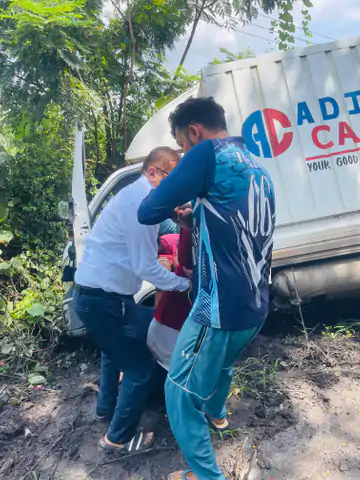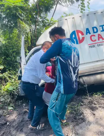 • જનસમૂહનો સમાગમ અને મામલતદારની મુલાકાત: અકસ્માતના ખબર મળતાં જ સ્થળે લોકો ભેગા થયા. આ જ સમયે મામલતદાર શ્રી ચૌધરી ત્યાંથી પસાર થઈ રહ્યા હતા. બનાવ જોઈને તેઓએ પોતાની સરકારી ગાડી ઉભી રાખી અને તપાસ કરી. તપાસ દરમિયાન તેમને જાણ મળી કે ચાલકને ચાલુ ગાડી દરમિયાન ચક્કર આવી જવાથી ટેમ્પો ખાડામાં ઉતરી ગયો હતો અને ડ્રાઇવર અંદર ફસાયેલો હતો.